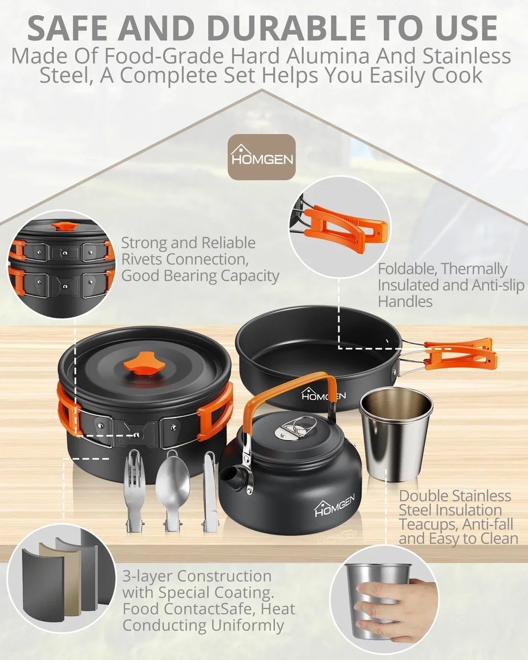 • Brand Commitment: HOMGEN is dedicated to producing high-quality, eco-friendly cookware and camping gear to support a healthy, sustainable outdoor lifestyle.